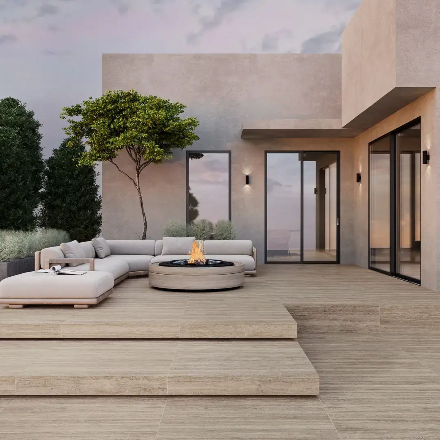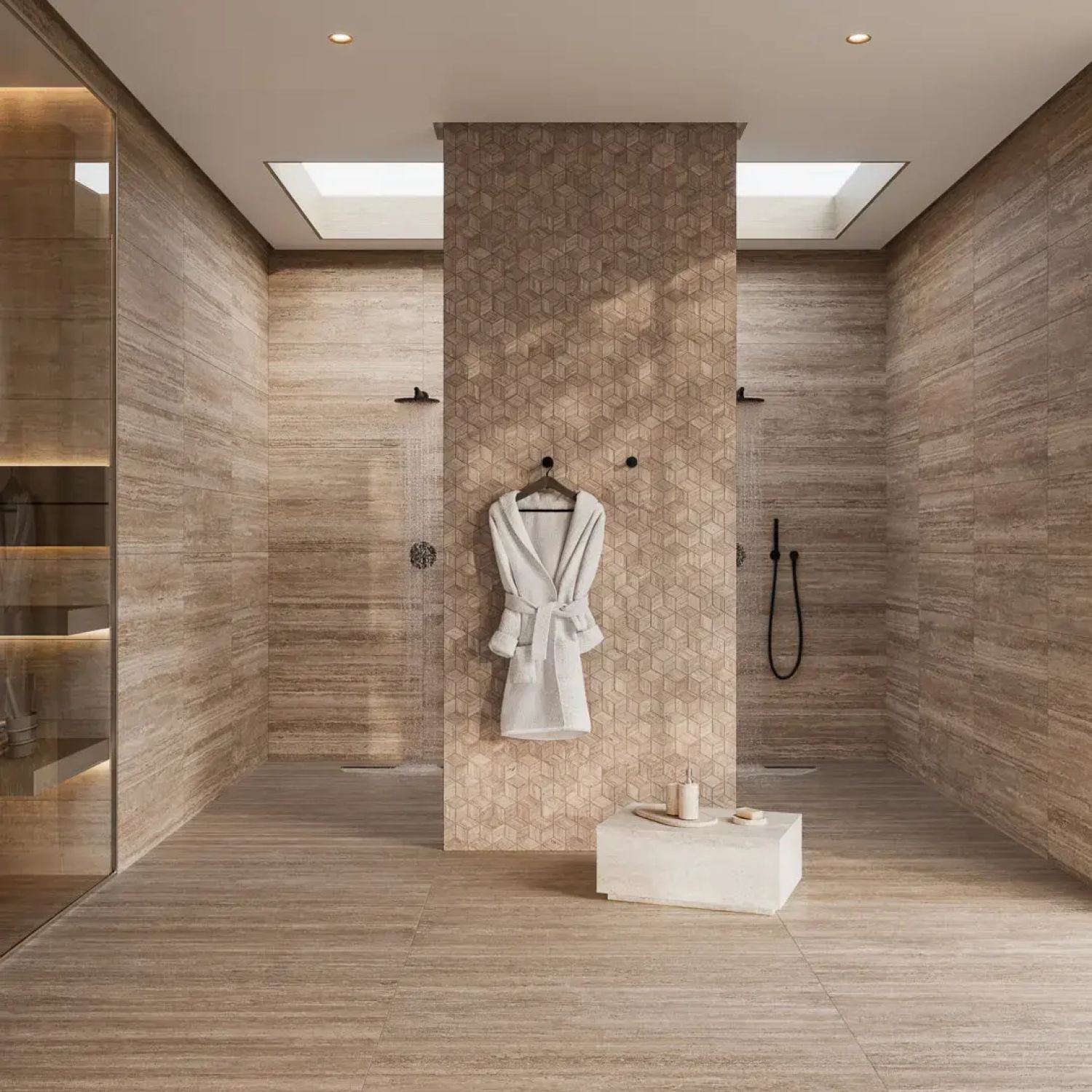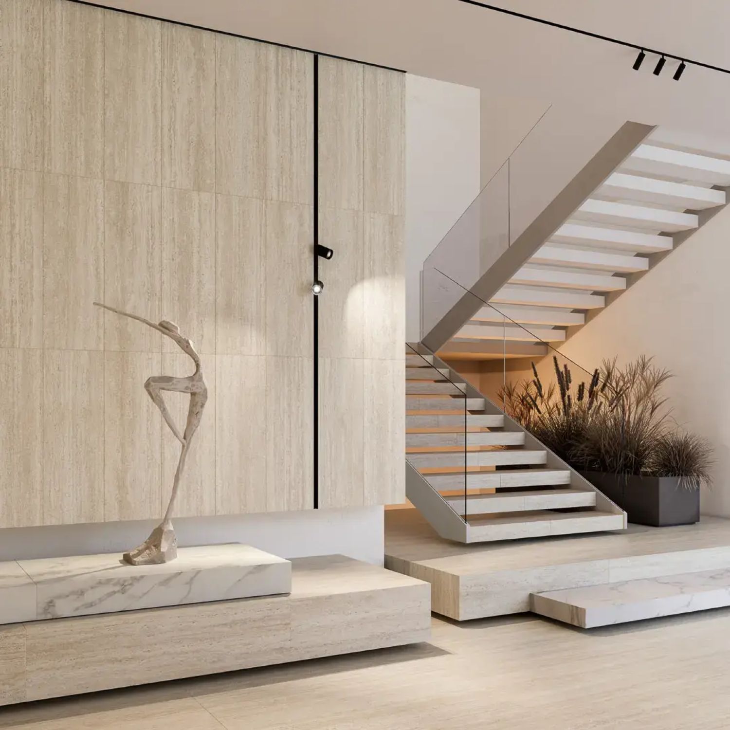 Керамогранит Подступенок Про Травертин бежевый матовый обрезной 119,5x10,7
